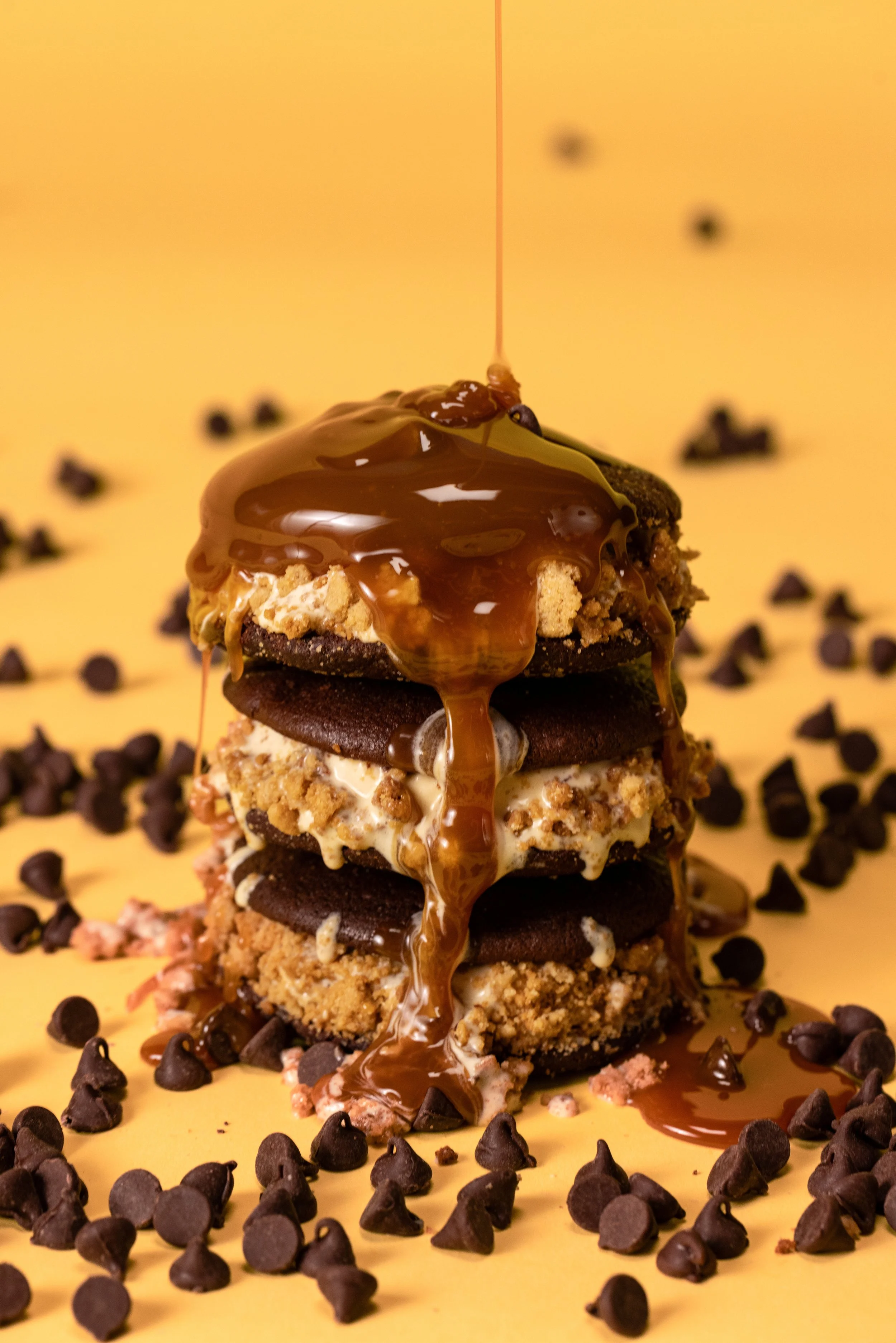 Chocolate Salted Caramel Chocolate Salted Caramel Chocolate Salted Caramel Sweetly balanced salted caramel ice cream & two choco-chocolate chip cookies & a delight of crave-worthy cookie crunch.Made by our hands with high quality ingredients.